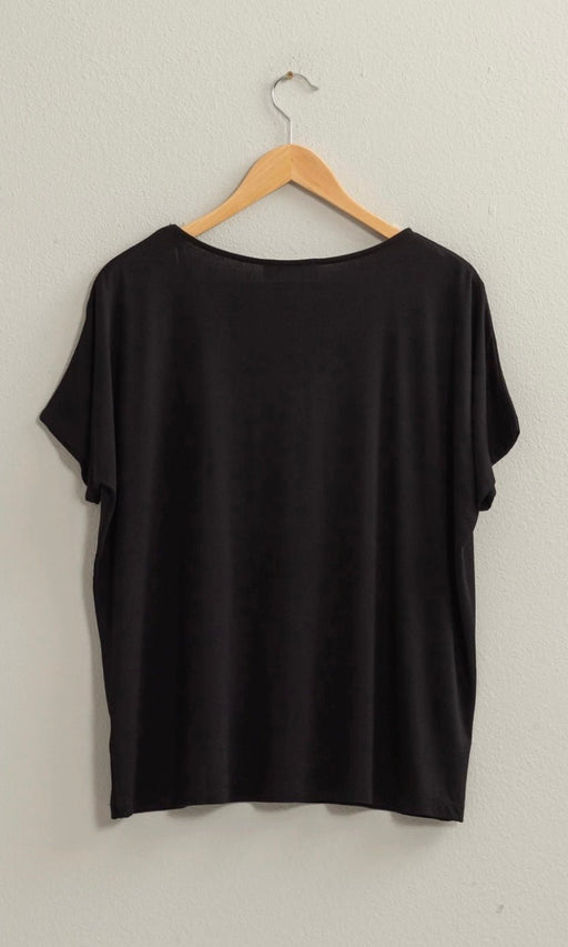 CHLOE V NECK DOLMAN SHORT SLEEVE TOP | BLACK